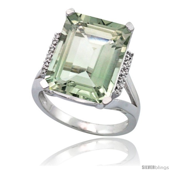 14k White Gold Diamond Green-Amethyst Ring 12 ct Emerald Cut 16x12 stone 3/4 in wide