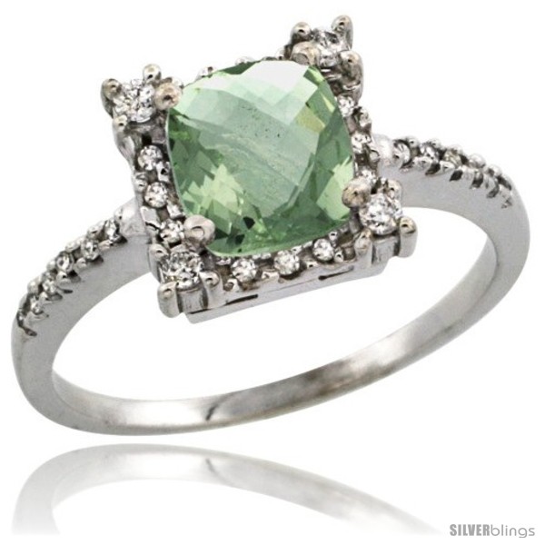 14k White Gold Diamond Halo Amethyst Ring 1.2 ct Checkerboard Cut Cushion 6 mm, 11/32 in wide