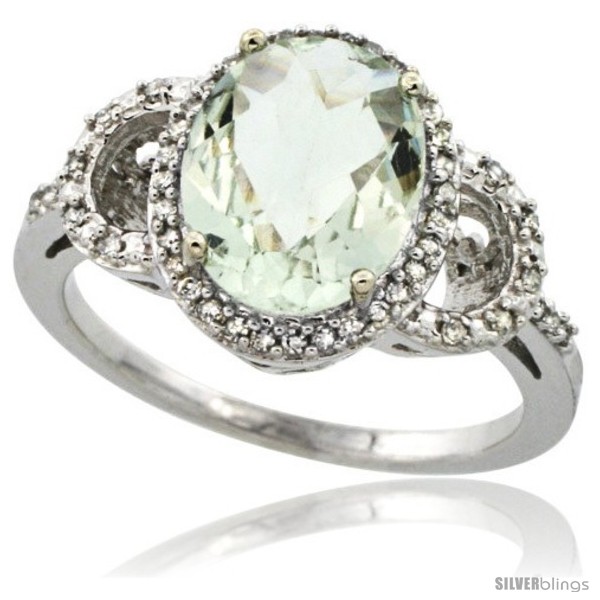 14k White Gold Diamond Halo Amethyst Ring 2.4 ct Oval Stone 10x8 mm, 1/2 in wide