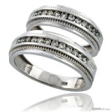 14k White Gold 2-Piece His (7mm) & Hers (6mm) Milgrain Design Diamond Wedding Ring Band Set w/ 0.62 Carat Brilliant Cut Diamonds