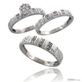 14k White Gold 2-Piece Diamond Ring Band Set w/ Rhodium Accent ( Engagement Ring & Man's Wedding Band ), w/ 0.15 Carat