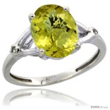 14k White Gold Diamond Lemon Quartz Ring 2.4 ct Oval Stone 10x8 mm, 3/8 in wide