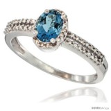 14k White Gold Ladies Natural London Blue Topaz Ring oval 6x4 Stone Diamond Accent -Style Cw405178
