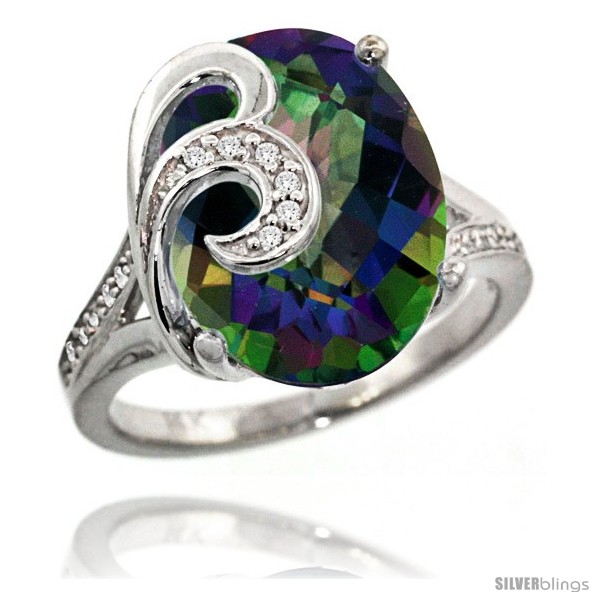 14k White Gold Natural Mystic Topaz Ring 16x12 mm Oval Shape Diamond Accent, 5/8 in wide