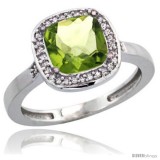 14k White Gold Diamond Peridot Ring 2.08 ct Checkerboard Cushion 8mm Stone 1/2.08 in wide