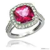 14k White Gold Diamond Halo Pink Topaz Ring Checkerboard Cushion 9 mm 2.4 ct 1/2 in wide