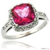 14k White Gold Diamond Pink Topaz Ring 2.08 ct Cushion cut 8 mm Stone 1/2 in wide