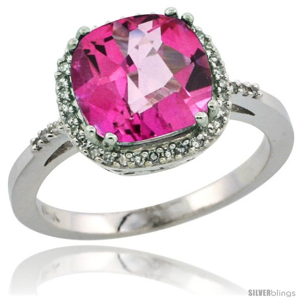 14k White Gold Diamond Pink Topaz Ring 3.05 ct Cushion Cut 9x9 mm, 1/2 in wide