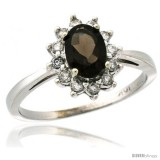 14k White Gold Diamond Halo Smoky Topaz Ring 0.85 ct Oval Stone 7x5 mm, 1/2 in wide