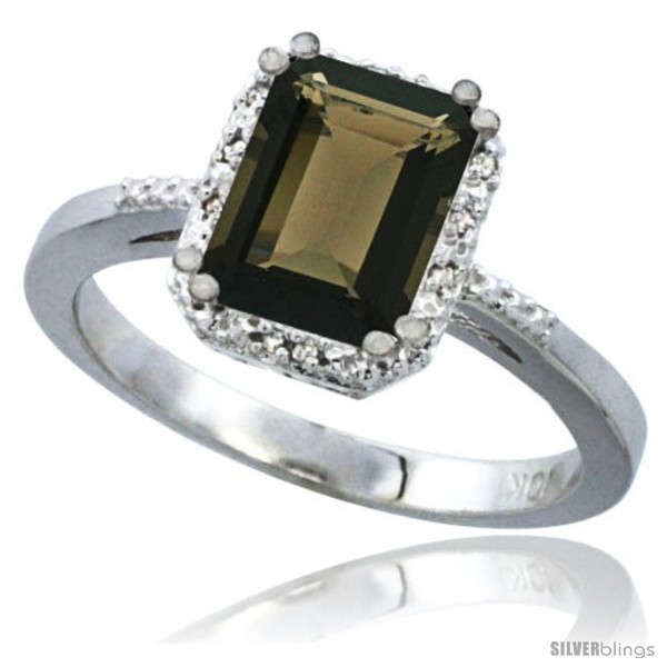 14k White Gold Ladies Natural Smoky Topaz Ring Emerald-shape 8x6 Stone Diamond Accent