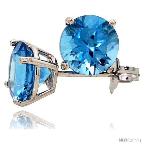 14K White Gold 6 mm Blue Topaz Stud Earrings 2 cttw December Birthstone
