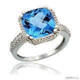 14k White Gold Diamond Halo Swiss Blue Topaz Ring Checkerboard Cushion 11 mm 5.85 ct 1/2 in wide