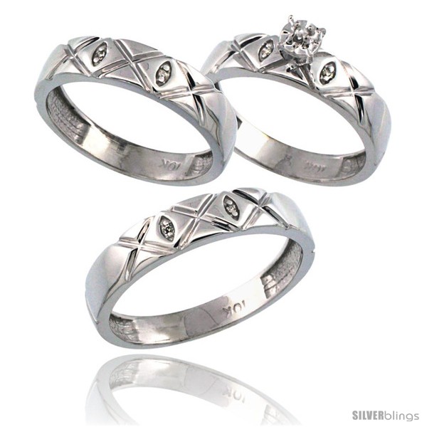 14k White Gold 3-Pc. Trio His (5mm) & Hers (4.5mm) Diamond Wedding Ring Band Set, w/ 0.056 Carat Brilliant Cut Diamonds