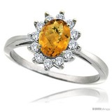 14k White Gold Diamond Halo Amethyst Ring 0.85 ct Oval Stone 7x5 mm, 1/2 in wide -Style Cw426130