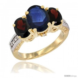 14K Yellow Gold Ladies 3-Stone Oval Natural Blue Sapphire Ring Diamond Accent