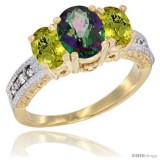 14k Yellow Gold Ladies Oval Natural Mystic Topaz 3-Stone Ring with Lemon Quartz Sides Diamond Accent