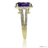 14k Yellow Gold Diamond Halo Amethyst Ring 2.85 Carat Oval Shape 11X9 mm, 7/16 in (11mm) wide