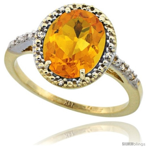14k Yellow Gold Diamond Citrine Ring 2.4 ct Oval Stone 10x8 mm, 1/2 in wide -Style Cy409111