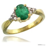 14k Yellow Gold Ladies Natural Emerald Ring oval 7x5 Stone Diamond Accent -Style Cy415168