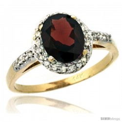 14k Yellow Gold Diamond Garnet Ring Oval Stone 8x6 mm 1.17 ct 3/8 in wide