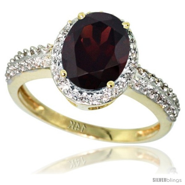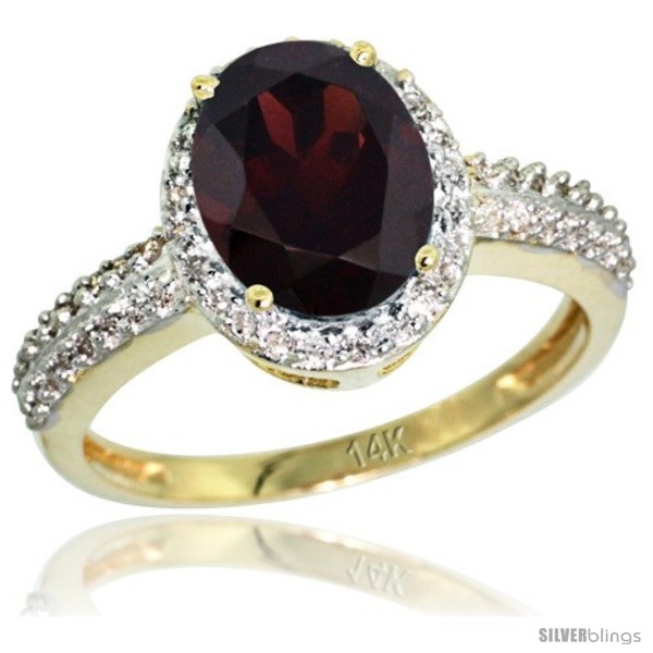 14k Yellow Gold Diamond Garnet Ring Oval Stone 9x7 mm 1.76 ct 1/2 in wide