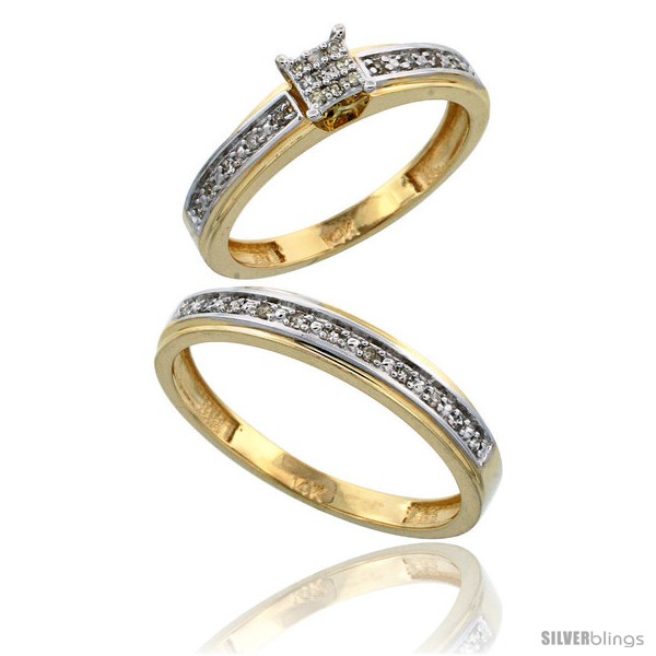 14k Gold 2-Piece Diamond Ring Set ( Engagement Ring & Man's Wedding Band ), w/ 0.21 Carat Brilliant Cut -Style Ljy202em