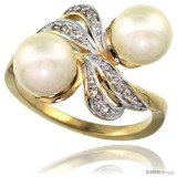 14k Gold Ribbon Pearl Ring w/ 0.09 Carat Brilliant Cut ( H-I Color VS2-SI1 Clarity ) Diamonds & 8mm White Pearls, 11/32 in
