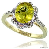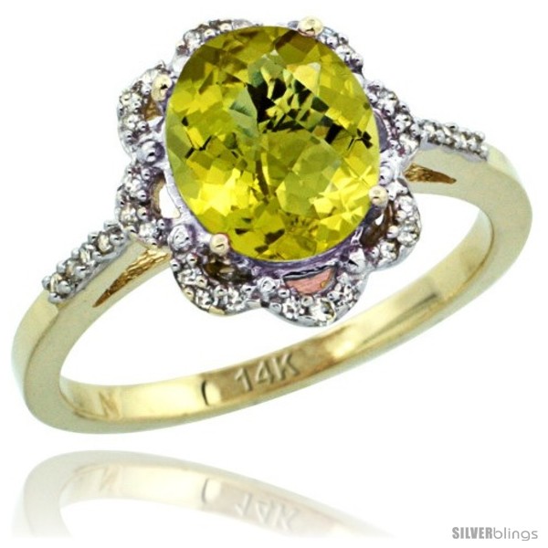 14k Yellow Gold Diamond Halo Lemon Quartz Ring 1.65 Carat Oval Shape 9X7 mm, 7/16 in (11mm) wide