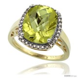 14k Yellow Gold Diamond Lemon Quartz Ring 5.17 ct Checkerboard Cut Cushion 12x10 mm, 1/2 in wide