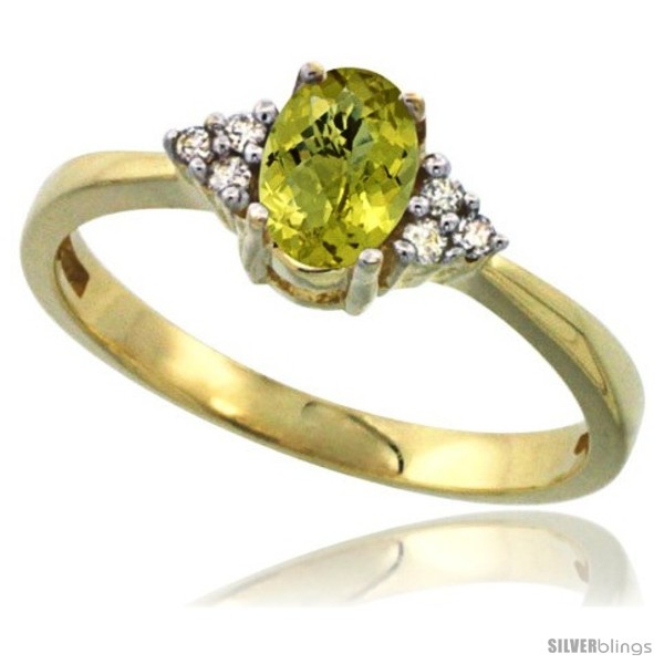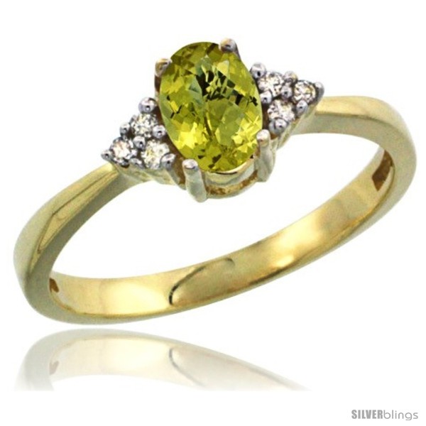 14k Yellow Gold Ladies Natural Lemon Quartz Ring oval 6x4 Stone Diamond Accent