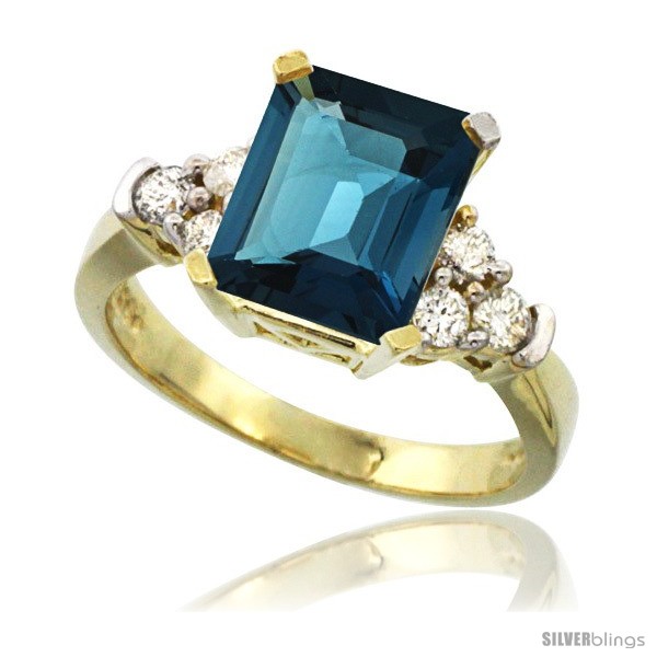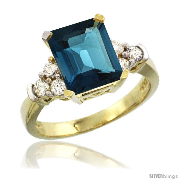 14k Yellow Gold Ladies Natural London Blue Topaz Ring Emerald-shape 9x7 Stone Diamond Accent