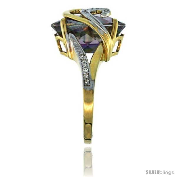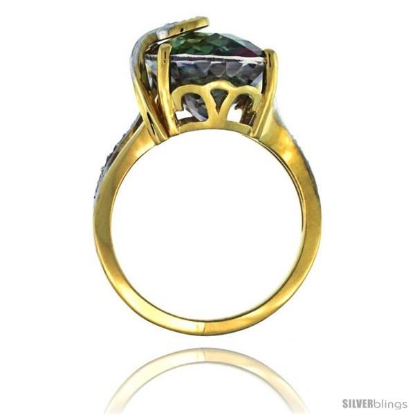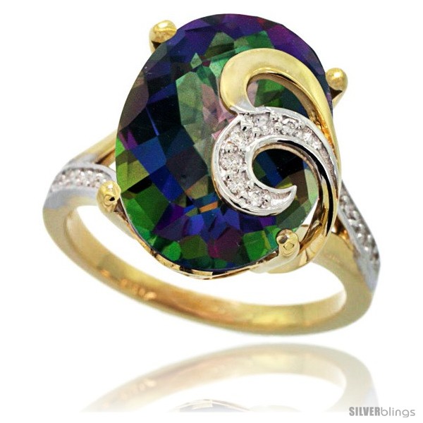 14k Gold Natural Mystic Topaz Ring 16x12 mm Oval Shape Diamond Accent, 5/8 in wide