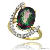 14k Gold Natural Mystic Topaz Ring Oval 14x10 Diamond Accent, 3/4inch wide