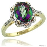14k Yellow Gold Diamond Halo Mystic Topaz Ring 1.65 Carat Oval Shape 9X7 mm, 7/16 in (11mm) wide