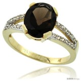 14k Yellow Gold and Diamond Halo Smoky Topaz Ring 2.4 carat Oval shape 10X8 mm, 3/8 in (10mm) wide