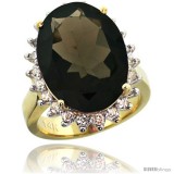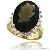 14k Yellow Gold Diamond Halo Smoky Topaz Ring 10 ct Large Oval Stone 18x13 mm, 7/8 in wide