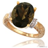 14k Yellow Gold Diamond Smoky Topaz Ring 5.5 ct Oval 14x10 Stone