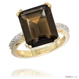 14k Yellow Gold Diamond Smoky Topaz Ring 5.83 ct Emerald Shape 12x10 Stone 1/2 in wide