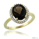 14k Yellow Gold Diamond Smoky TopazRing 2.4 ct Oval Stone 10x8 mm, 1/2 in wide