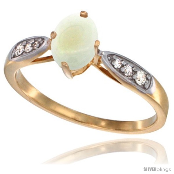 14k Gold Natural Opal Ring 7x5 Oval Shape Diamond Accent, 5/16inch wide