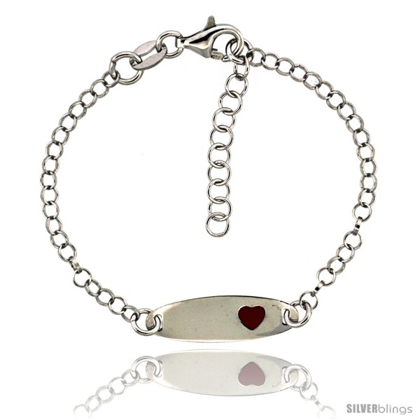 Sterling Silver Rolo Link Baby ID Bracelet in White Gold Finish w/ Red Heart Accent (5-6 in)