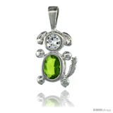 Sterling Silver August Birthstone Dog Pendant w/ Peridot Color Cubic Zirconia