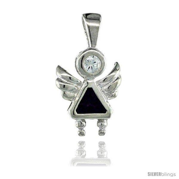 Sterling Silver February Birthstone Angel Pendant w/ Amethyst Color Cubic Zirconia