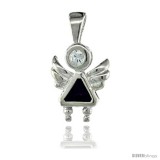 This attractive Baby & Children's Silver Pendant crafted for Babies & Children is dazzling and charming. You wear this charm to represent a Daughter or a Granddaughter with the appropriate birthstone. This is one of the all time favorite Birthstone Pendants for Mothers and Grandmothers. The Stone in the head is a 4mm Cubic Zirconia, and the one in the Body is a Trillium 8mm X 8mm Synthetic color Stone and the body is sterling Silver. The height of the charm is 1 3/16” (3 cm). CHAIN IS NOT INCLUDED.