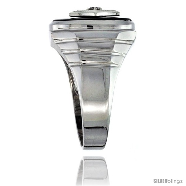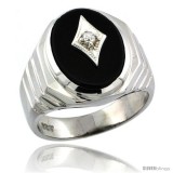 Sterling Silver Gent's Black Onyx Ring Diamond Center Oval Shape Rhodium Finish -Style Rdia802
