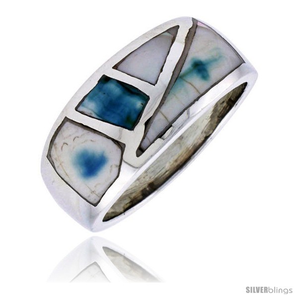 Sterling Silver Fancy Band, w/Blue-Green Mother of Pearl Inlay, 7/16" (11 mm) wide
