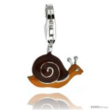Sterling Silver Snail Shell Charm for Bracelet, 9/16 in. (15 mm) wide, Brown Enamel Finish