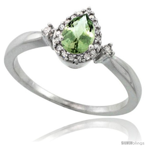 Sterling Silver Diamond Natural Green Amethyst Ring Ring 0.33 ct Tear Drop 6x4 Stone 3/8 in wide