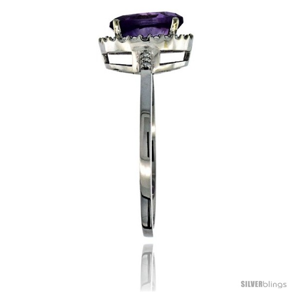 Sterling Silver Diamond Natural Green Amethyst Ring Ring 1.17 ct Oval Stone 8x6 mm, 3/8 in wide