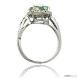 Sterling Silver Diamond Natural Green Amethyst Ring Ring 2.08 ct Cushion cut 8 mm Stone 1/2 in wide